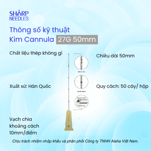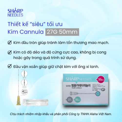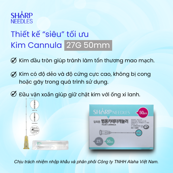 Kim Cannula 27G là thiết bị y tế chuyên dụng, được thiết kế đặc biệt cho các liệu trình tiêm thẩm mỹ như: tiêm filler, BAP, mỡ tự thân… Với thiết kế đầu tù (đầu tròn), sản phẩm giúp giảm thiểu đau đớn, hạn chế biến chứng và đảm bảo độ chính xác cao khi đưa tinh chất vào đúng vị trí dưới da.