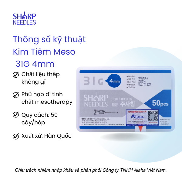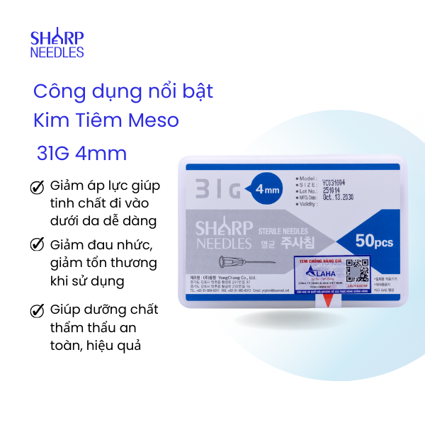 Kim Tiêm Meso 31G 4mm có công dụng chính là tiêm dưỡng chất vào dưới da.