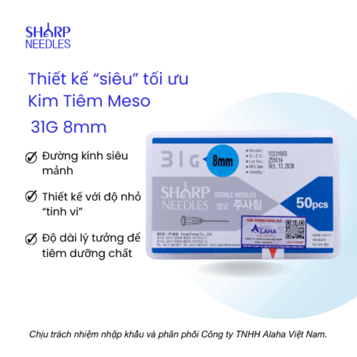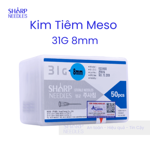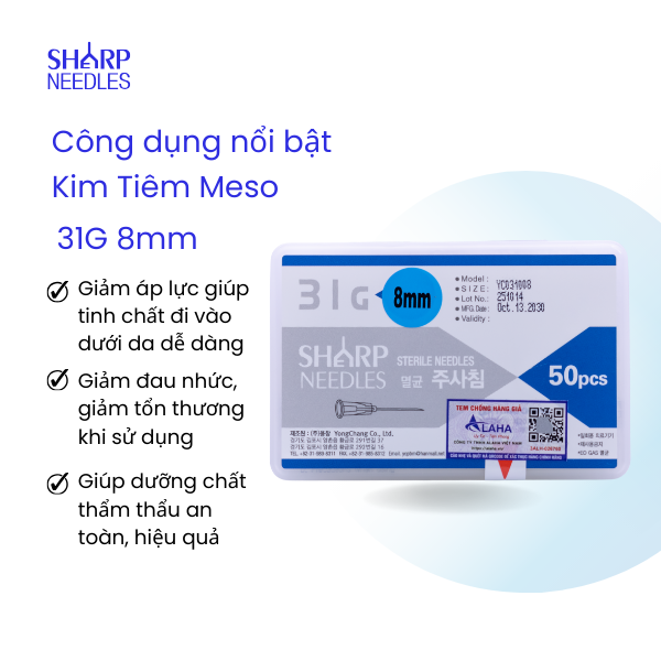 Kim Tiêm Meso 31G 8mm có công dụng chính là tiêm dưỡng chất vào dưới da.
