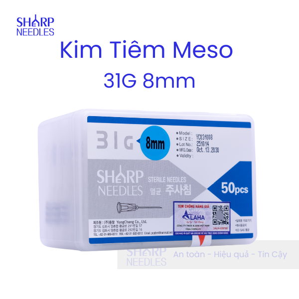 Kim Tiêm Meso 31G 8mm được đóng gói trong dạng ống nhựa vô khuẩn.
