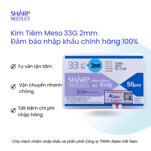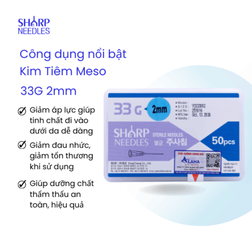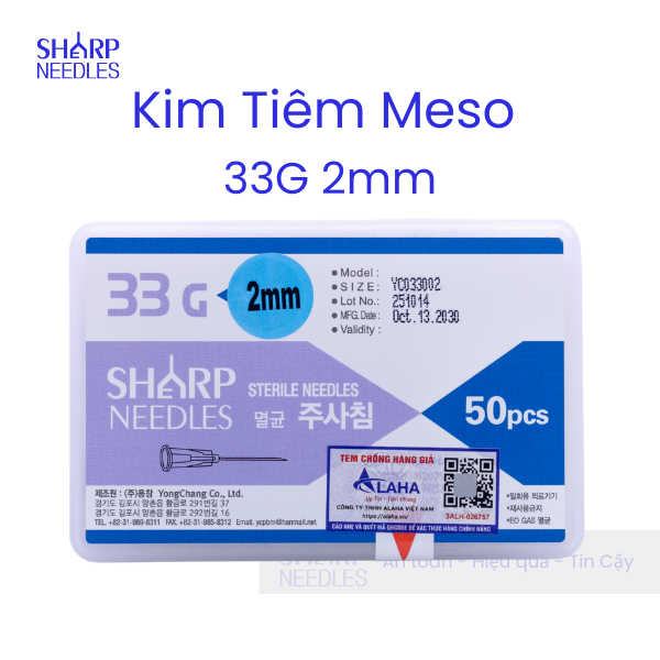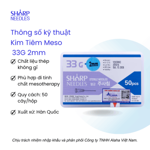Kim Tiêm Meso 33G 2mm là sản phẩm kim thẩm mỹ chuyên dụng sử dụng trong liệu trình thẩm meso.