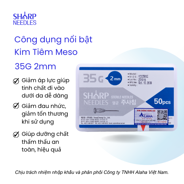 Kim Tiêm Meso 35G 2mm có công dụng chính là tiêm dưỡng chất vào dưới da.