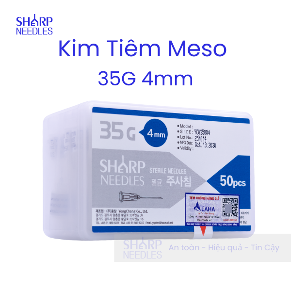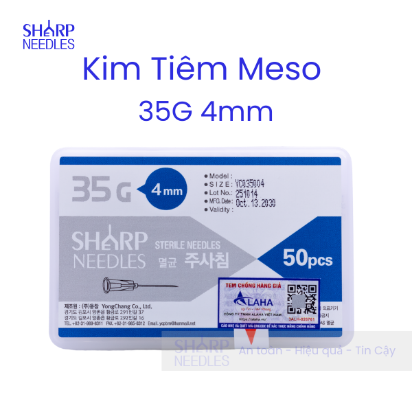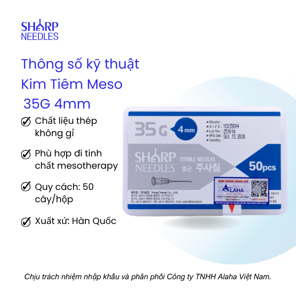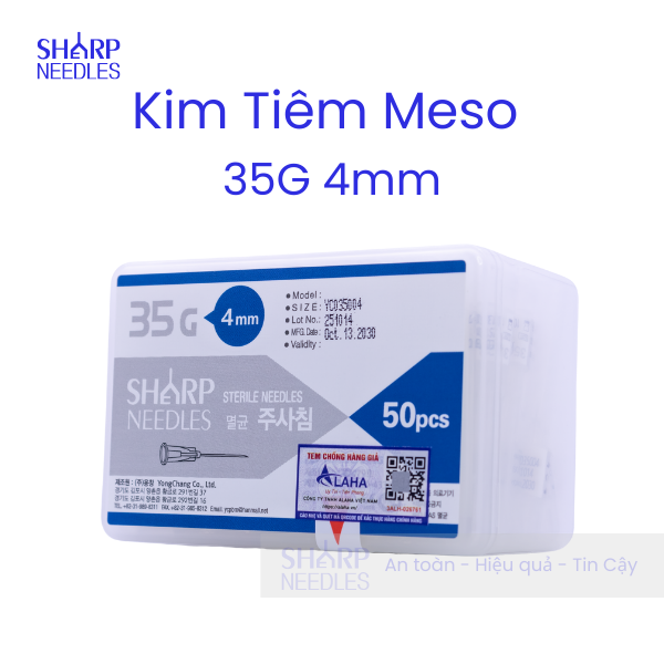 Kim Tiêm Meso 35G 4mm được đóng gói trong dạng ống nhựa vô khuẩn.