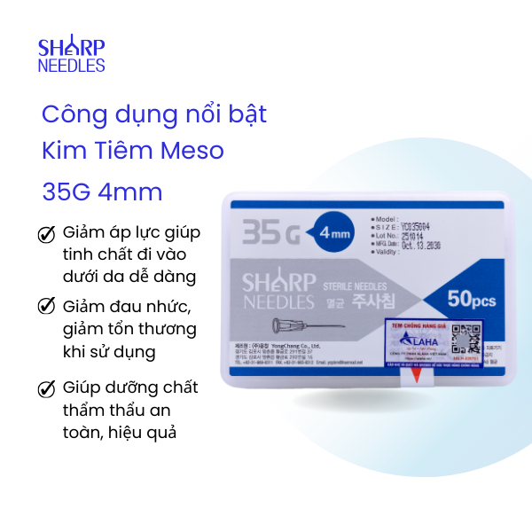 Kim Tiêm Meso 35G 4mm có công dụng chính là tiêm dưỡng chất vào dưới da.